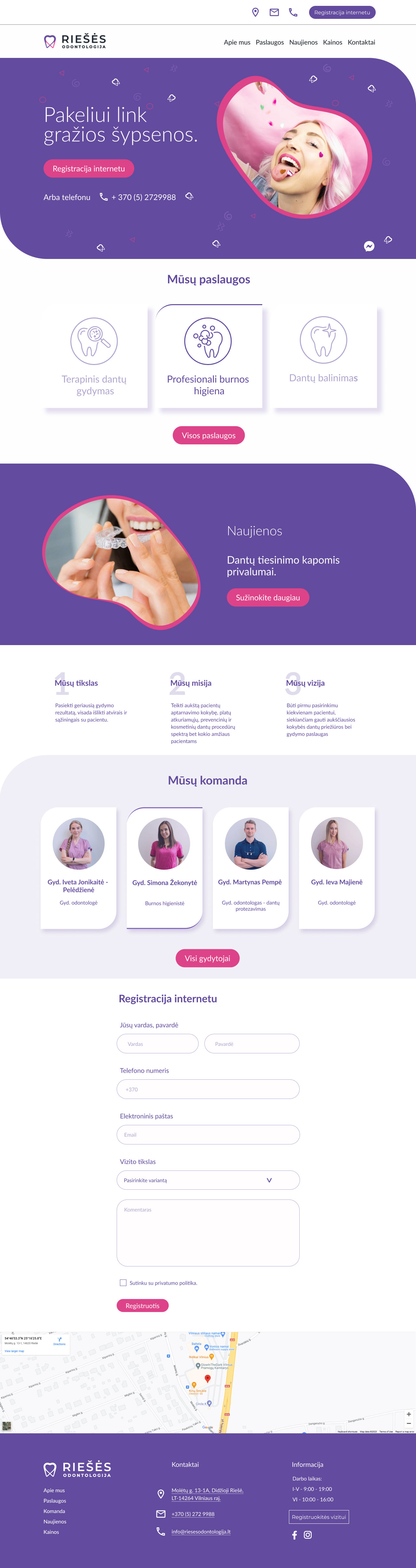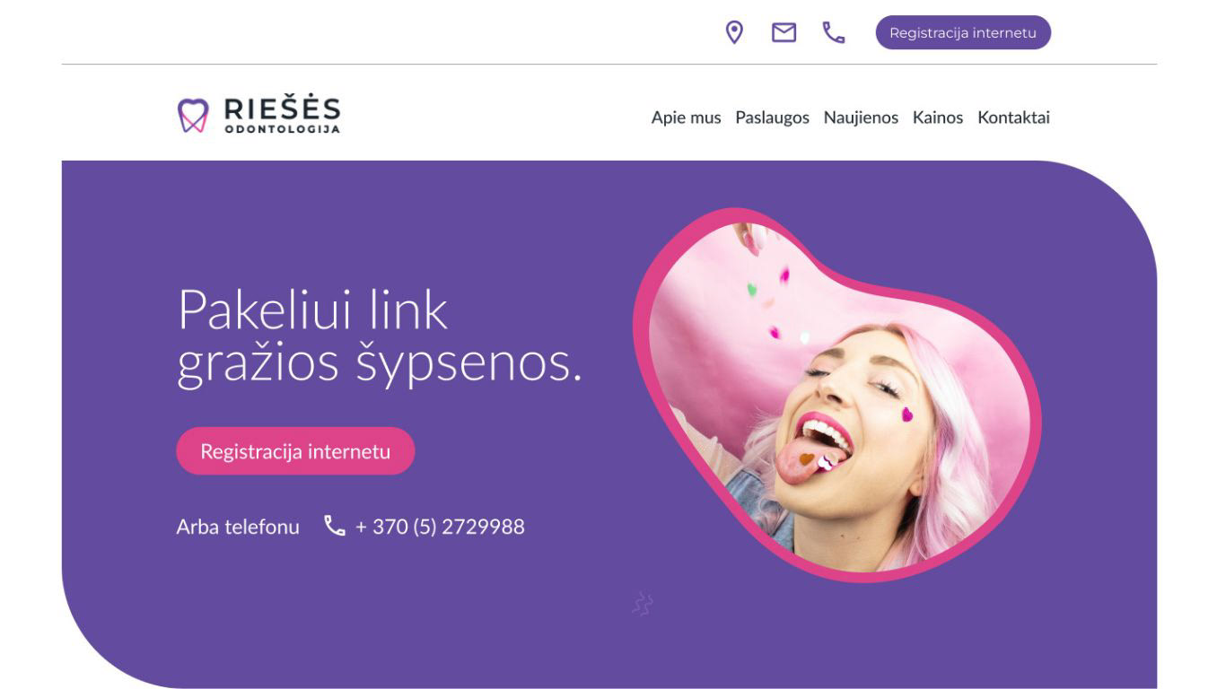 Testinė užduotis – parengti patobulintą pagrindinio puslapio dizainą odontologijos klinikos svetainei.